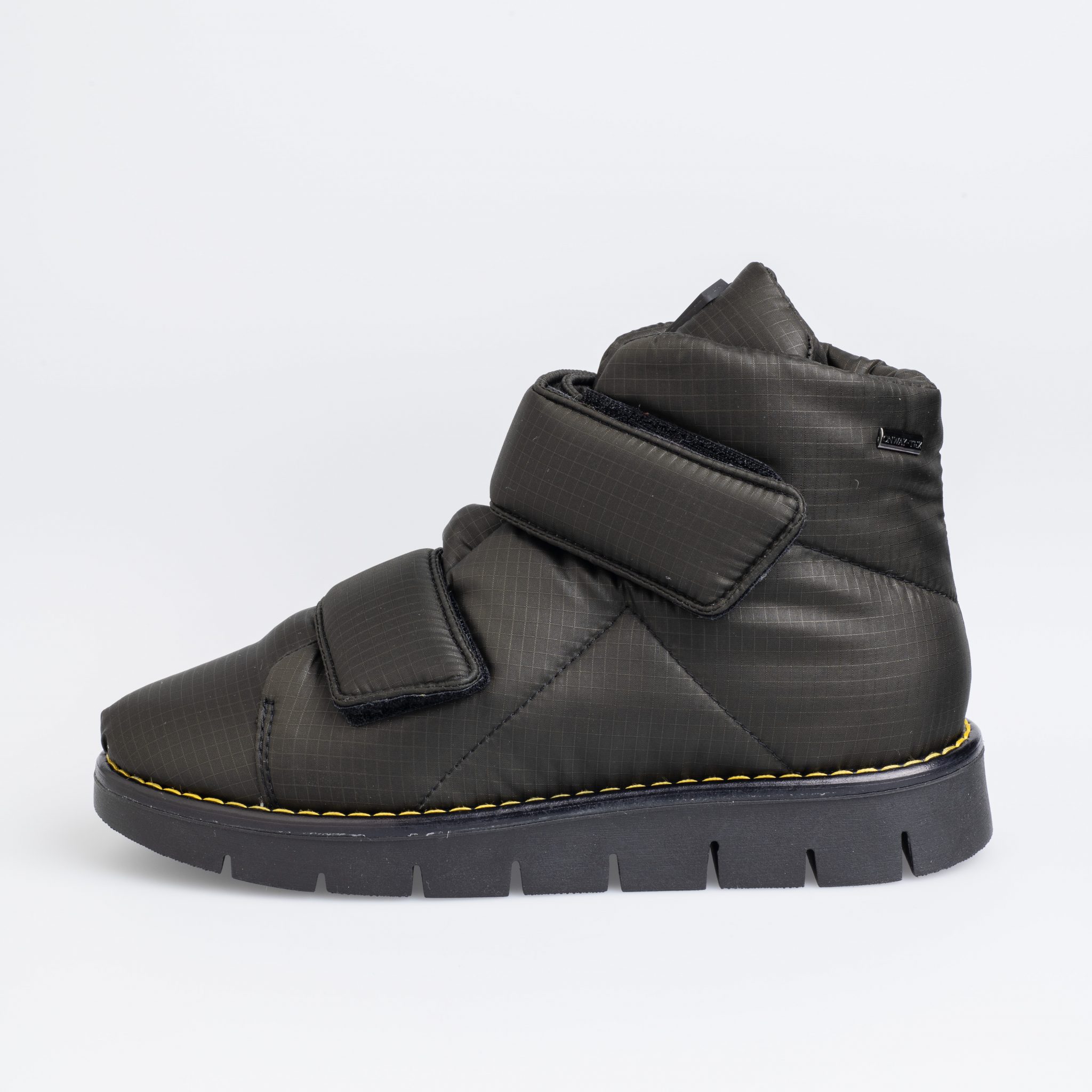 Верх актуальных ботинок из плотного непродуваемого нейлона, легко очищаемого от загрязнений, прочно сшит с широкой протекторной подошвой с контрастным рантом. Двумя ремешками велькро удобно регулировать посадку обуви по ноге Верх -текстиль (нейлон) с мембраной ONWAY-TEX Подкладка -текстиль Подошва-полимер Толщина подошвы 3,3 см