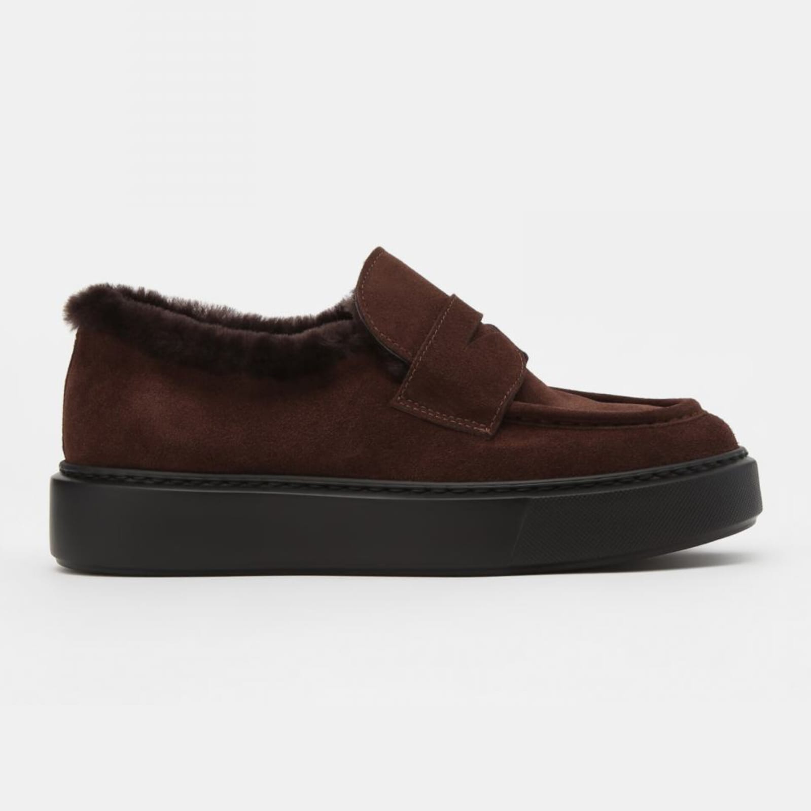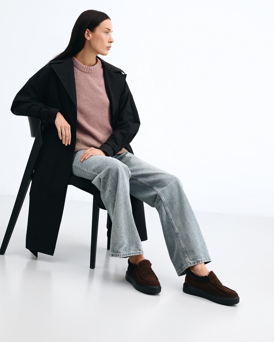 Меховые ботинки Principe di Bologna в эстетике лоферов отличаются особой мягкостью за счет верха из премиальной замши, подкладки и стельки из натурального меха, что обеспечивают теплоизоляцию, воздухопроницаемость и максимальный комфорт. Носочная часть очерчена фактурным швом и украшена декоративной перемычкой. Объемная подошва изготовлена из износостойкой резины. Высота каблука 3.5 см. Страна производства — Италия