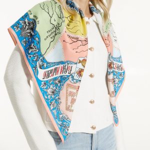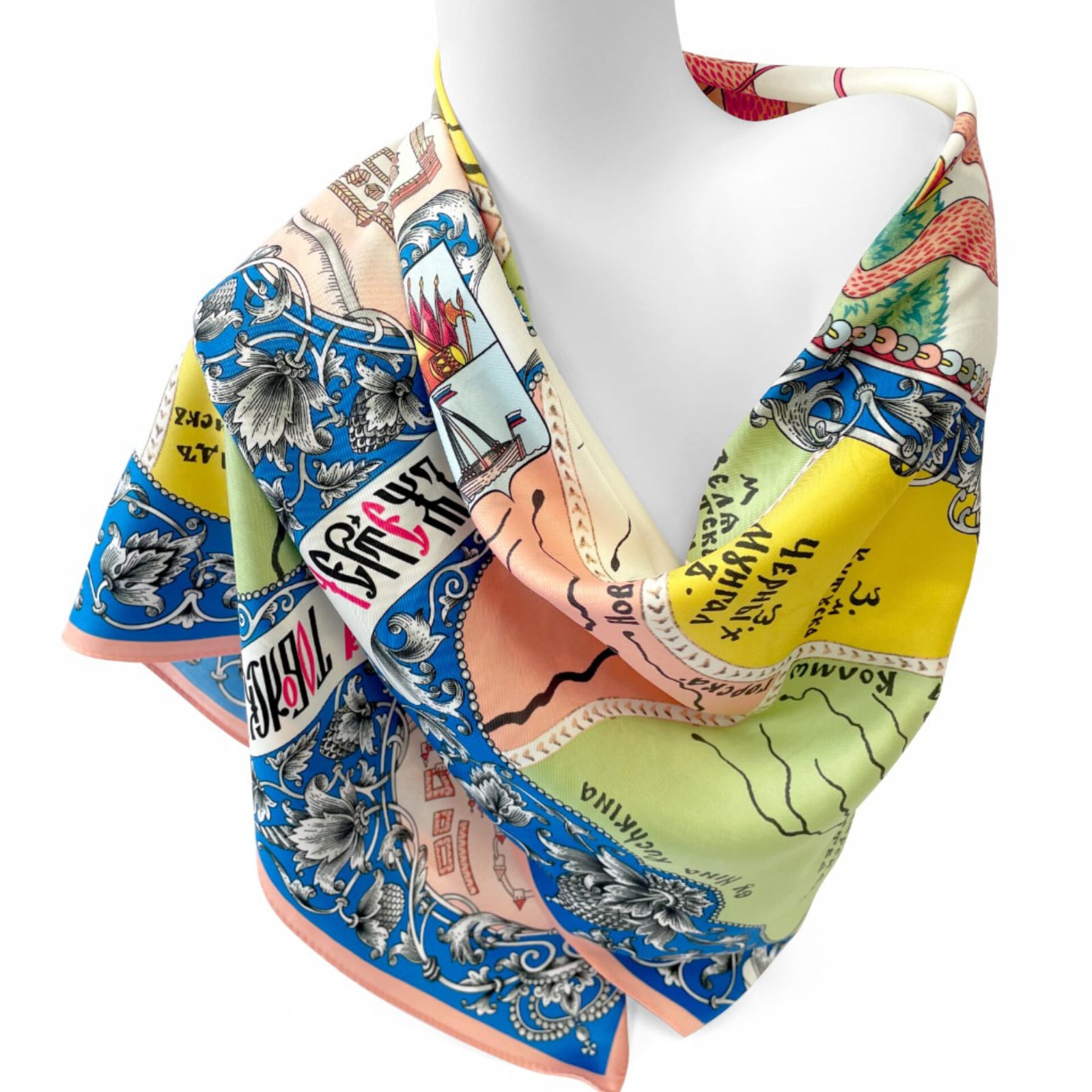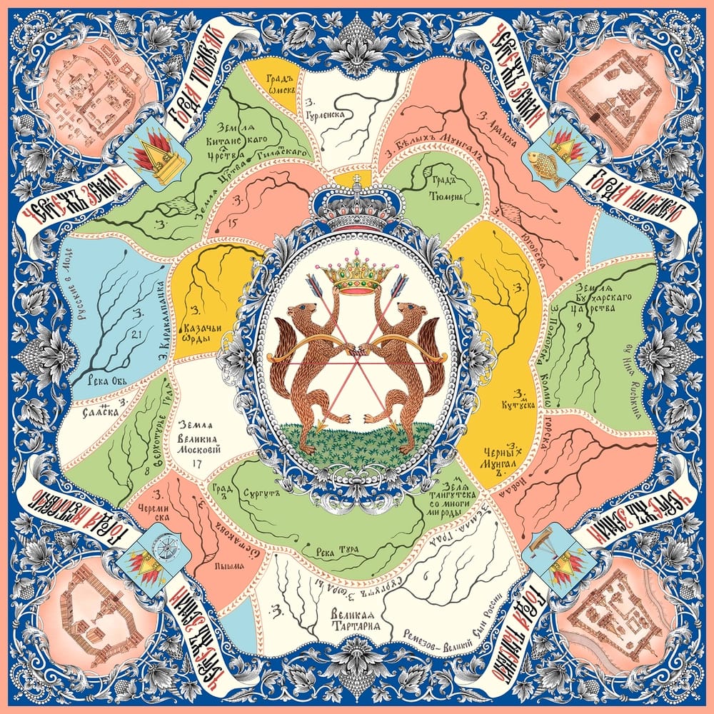 Нежная и освежающая цветовая гамма этого шелкового аксессуара в эксклюзивной подарочной упаковке — прекрасный подарок себе и любимым. Дизайн платка посвящен уникальному Атласу Сибири, который называют “Картографической Джокондой”, а его творца ученого-энциклопедиста, поэта и художника Семена Ремезова — Сибирским Леонардо да Винчи Композиция платка — герб Сибири 17-18вв, окруженный старинными картами Тобольска, Тюмени, Ишима и Ялуторовска, — память об истории Края и его талантливом исследователе Состав: шелк 70%/вискоза 30%, Размер: 90*90 см Изделия предлагаются в эксклюзивной подарочной упаковке