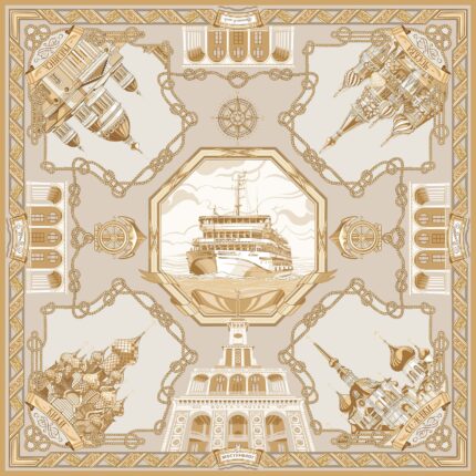 Платок «России добродетель» – элегантный аксессуар и памятный подарок. Дизайн соединяет символы мира, милосердия и взаимопомощи — белых голубей, сердца в открытых ладонях, орнаментальный цветок жизни. Изображение памятника князьям Кузьме Минину и Дмитрию Пожарскому – воплощение народного единства в логотипе Общественной Палаты РФ. Декоративные ленты на разных языках несут миссию: «Объединяем общество в диалоге с властью для достижения системных изменений и справедливых решений для всех» Состав: 70% шёлк/30% вискоза Размер: 90*90 см Изделия предлагаются в эксклюзивной подарочной упаковке