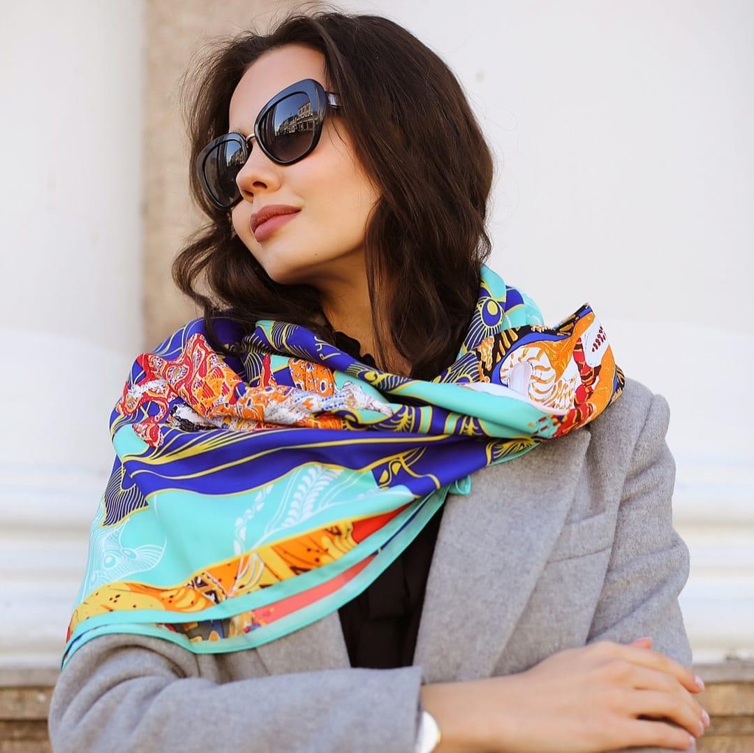 Самый модный аксессуар осенью, зимой, весной и летом — неизменно шелковый женский платок. Балетные костюмы Леона Бакста, ведущего живописца «Русских сезонов» Сергея Дягилева в Париже открыли новую эпоху развития мировой моды. Художественный критик А. Левинсон писал: «Париж был подлинно пьян Бакстом». В дизайне платка «Русские сезоны. Леон Бакст» by NINA RUCHKINA воспроизведены эскизы костюмов к балетным спектаклям «Клеопатра», «Шехерезада» и «Послеполуденный сон Фавна», поражавшие зрителей сказочной роскошью и фантазией, утонченной изысканностью линий, новыми и смелыми сочетаниями красок. Такой аксессуар привнесёт в жизнь ещё больше творческого вдохновения и ярких, незабываемых эмоций. Размер 90*90 см Состав: шелк 70%/вискоза 30%, исключительно приятный на ощупь и неприхотливый в уходе Изделия предлагаются в эксклюзивной подарочной упаковке