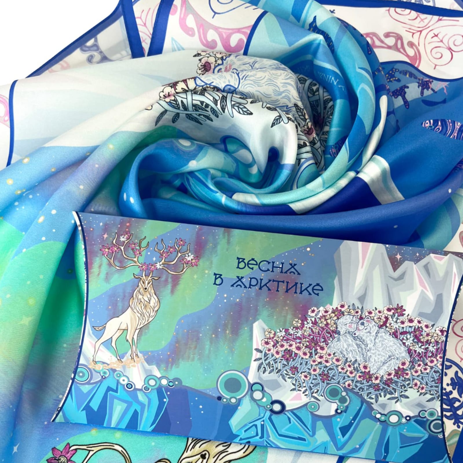Платок «Весна в Арктике» by NINA RUCHKINA 100% шёлк