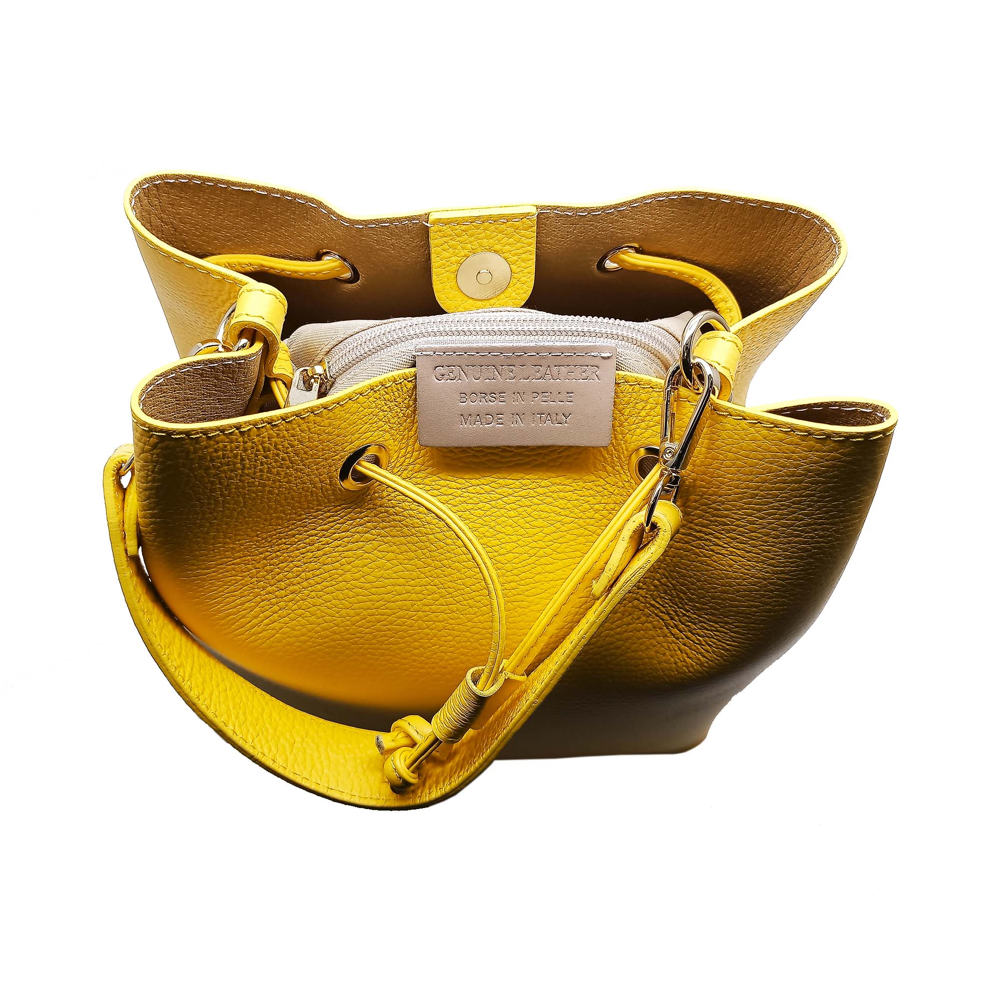 Стильная и яркая, лаконичная и экстравагантная сумка-ведро из натуральной зернистой кожи